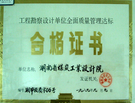 全面質(zhì)量管理合格證書(shū)(1989)