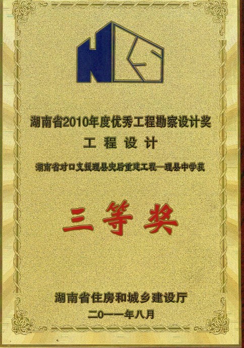 湖南省優(yōu)秀設(shè)計(jì)表?yè)P(yáng)金獎(jiǎng)(1984)