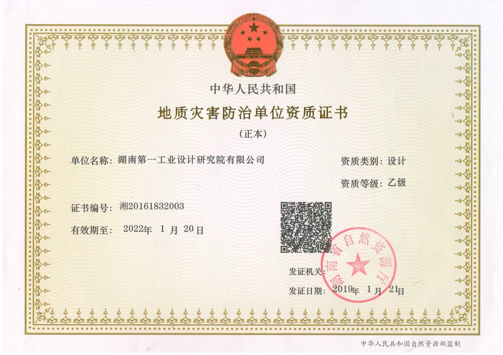 地質(zhì)災(zāi)害防治單位資質(zhì)證書(shū)